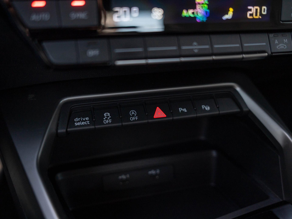 Deze Audi A3 Limousine combineert het elegante sportback-design met de sportieve uitstraling van het dubbele S line-pakket. De S-line stoelen zijn mooi afgewerkt met half leder en stof.