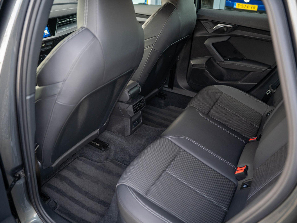 Deze Audi A3 Limousine combineert het elegante sportback-design met de sportieve uitstraling van het dubbele S line-pakket. De S-line stoelen zijn mooi afgewerkt met half leder en stof.